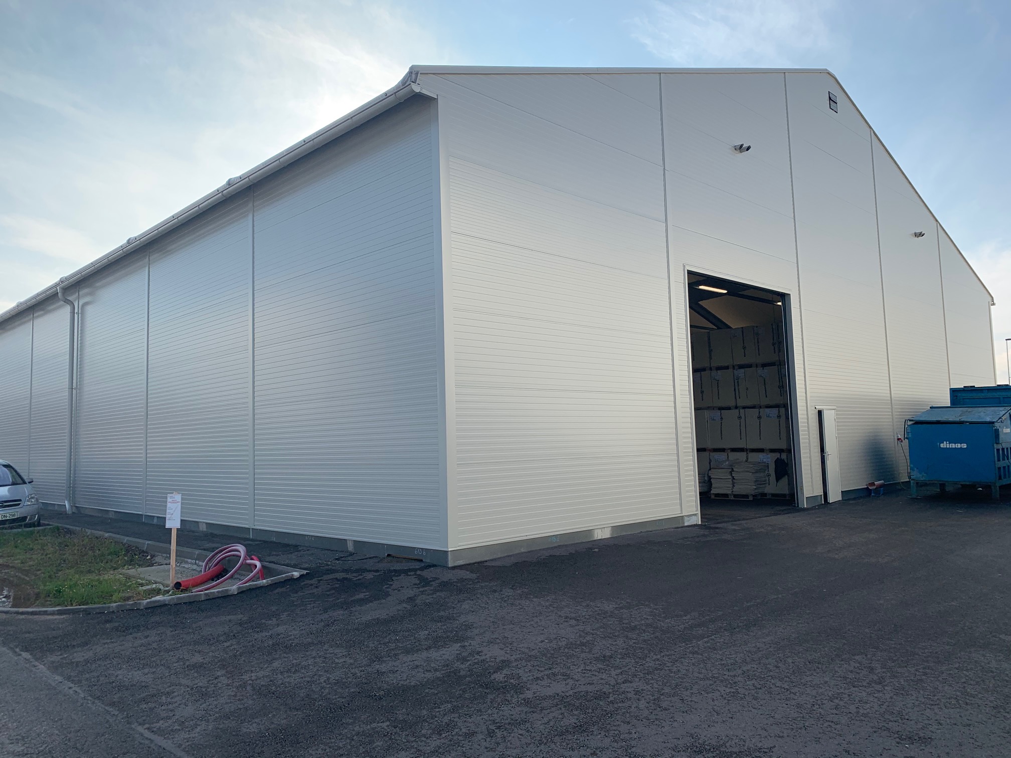 - Seitenwandverkleidung Sandwichpaneele, verzinktes und gefärbtes Blech, Kern 50mm PU, U-Wert 0,45 W/m²K